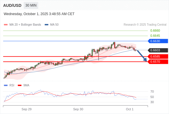 在 0.6630 之下,看跌,目标价位为 0.6585 ,然后为 0.6570 。