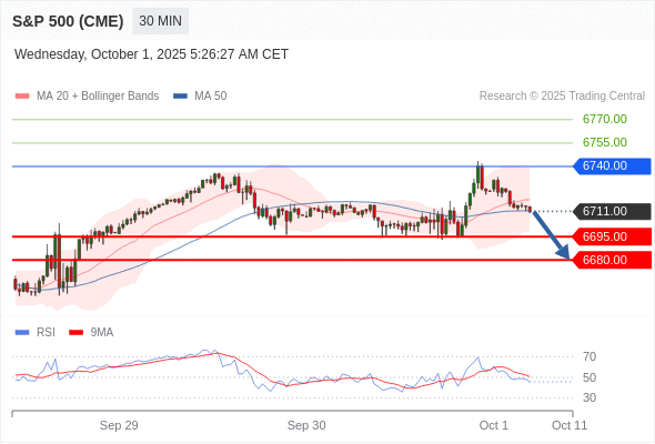 在 6740.00 之下,看跌,目标价位为 6695.00 ,然后为 6680.00 。