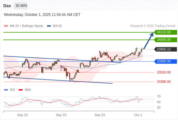 在 23680.00 之上,看涨,目标价位为 24000.00 ,然后为 24110.00 。