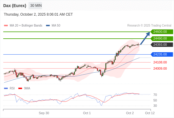 在 24235.00 之上,看涨,目标价位为 24490.00 ,然后为 24600.00 。