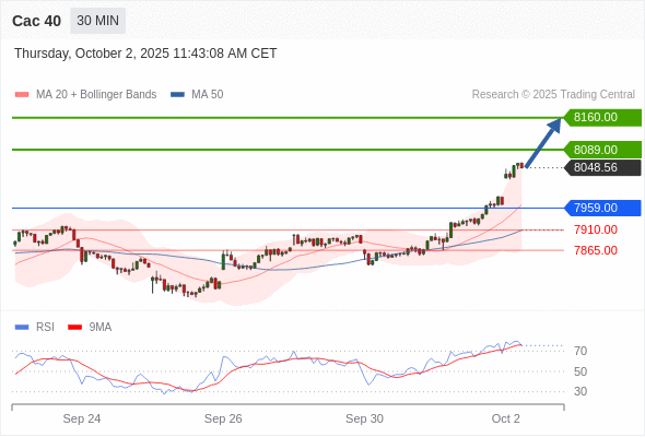 Cac 40 当日内: 进一步上涨。