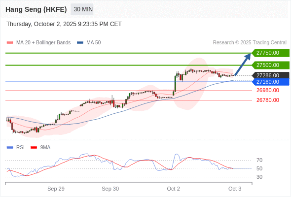 香港恒生指数期货 当日内: 超短线(当日内)支撑位在26980.00附近。