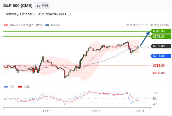 在 6742.00 之上,看涨,目标价位为 6795.00 ,然后为 6810.00 。