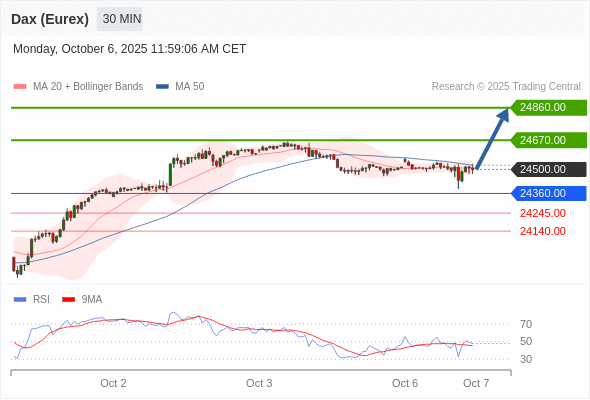 德国DAX指数期货 (Eurex) (Z5) 当日内: 在24360.00之上,看涨。