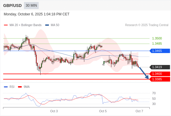 在 1.3465 之下,看跌,目标价位为 1.3400 ,然后为 1.3385 。