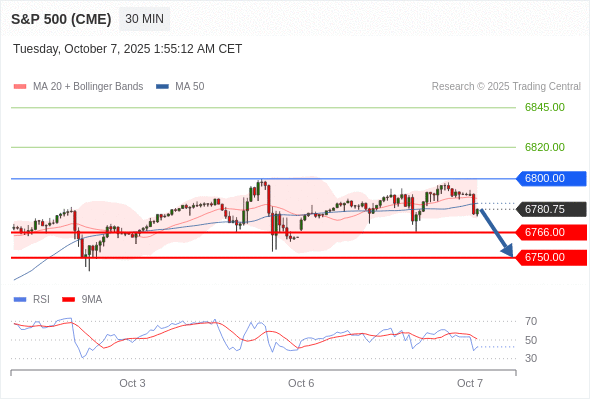 在 6800.00 之下,看跌,目标价位为 6766.00 ,然后为 6750.00 。