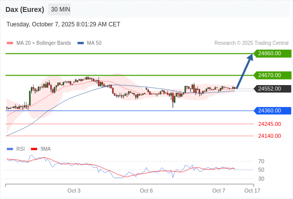 德国DAX指数期货 (Eurex) (Z5) 当日内: 在24360.00之上,看涨。