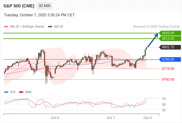 在 6786.00 之上,看涨,目标价位为 6813.00 ,然后为 6820.00 。