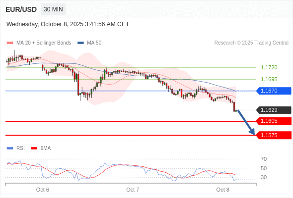 在 1.1670 之下,看跌,目标价位为 1.1605 ,然后为 1.1575 。