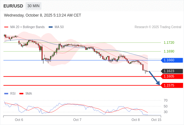 在 1.1660 之下,看跌,目标价位为 1.1605 ,然后为 1.1575 。