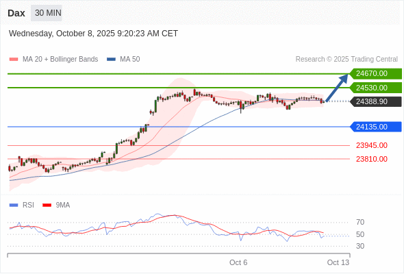 在 24135.00 之上,看涨,目标价位为 24530.00 ,然后为 24670.00 。