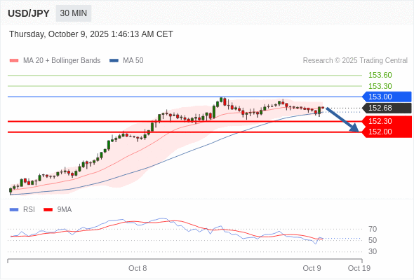 交易策略: 在 153.00 之下,看跌,目标价位为 152.30 ,然后为 152.00 。