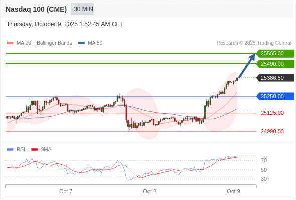 交易策略: 在 25250.00 之上,看涨,目标价位为 25490.00 ,然后为 25565.00 。