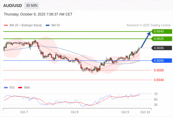 在 0.6580 之上,看涨,目标价位为 0.6625 ,然后为 0.6640 。