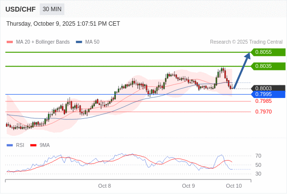 在 0.7995 之上,看涨,目标价位为 0.8025 ,然后为 0.8035 。