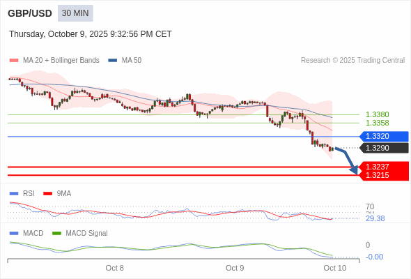 英镑/美元 当日内 : 看跌,在 1.3320 之下。