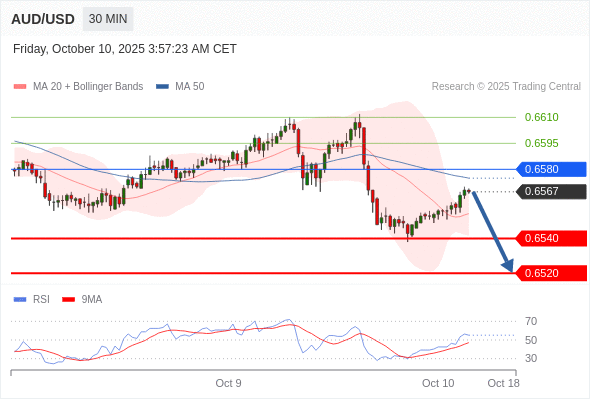 在 0.6580 之下,看跌,目标价位为 0.6540 ,然后为 0.6520 。