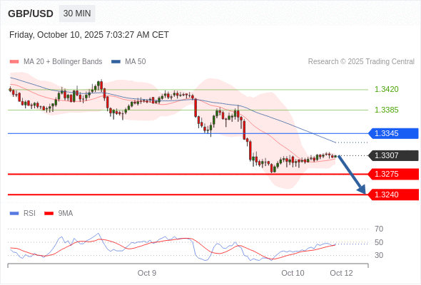 在 1.3345 之下,看跌,目标价位为 1.3275 ,然后为 1.3240 。