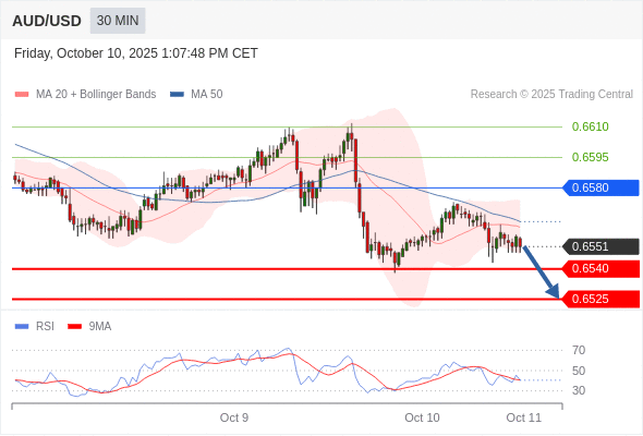 在 0.6580 之下,看跌,目标价位为 0.6540 ,然后为 0.6525 。
