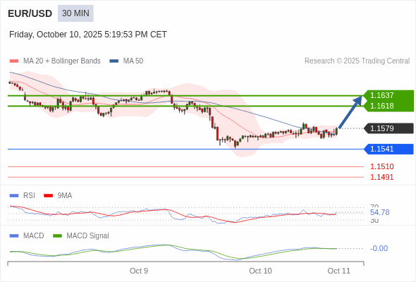 欧元/美元 当日内 : 看涨,当 1.1541 未被跌破。