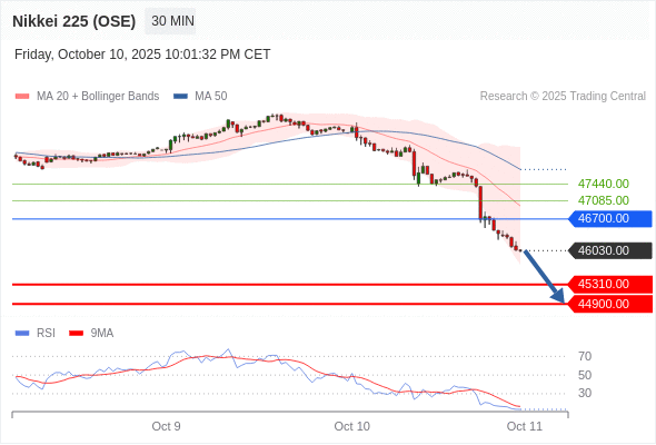 在 46700.00 之下,看跌,目标价位为 45310.00 ,然后为 44900.00 。