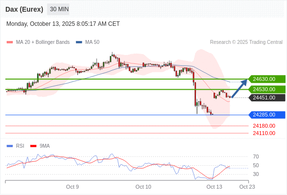 在 24285.00 之上,看涨,目标价位为 24530.00 ,然后为 24630.00 。