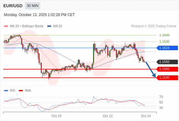 在 1.1615 之下,看跌,目标价位为 1.1565 ,然后为 1.1545 。