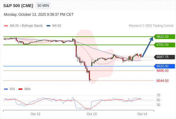 在 6632.00 之上,看涨,目标价位为 6762.00 ,然后为 6812.00 。