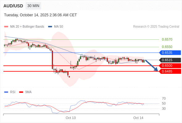 交易策略: 在 0.6535 之下,看跌,目标价位为 0.6500 ,然后为 0.6485 。