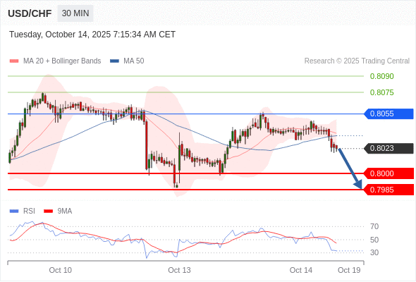 在 0.8055 之下,看跌,目标价位为 0.8000 ,然后为 0.7985 。