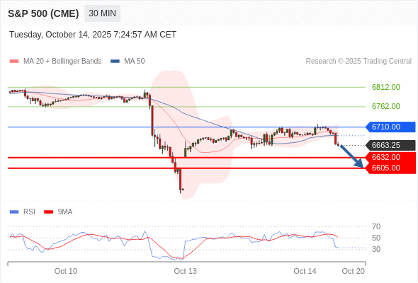 在 6710.00 之下,看跌,目标价位为 6632.00 ,然后为 6605.00 。