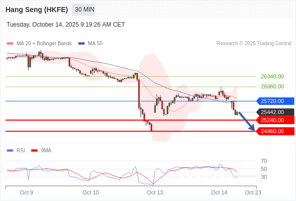 交易策略: 在 25720.00 之下,看跌,目标价位为 25240.00 ,然后为 24960.00 。