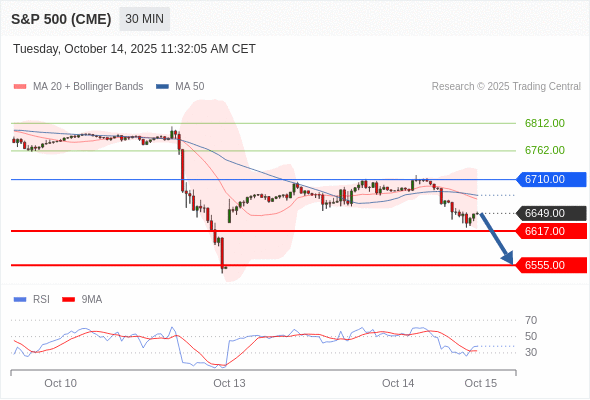 在 6710.00 之下,看跌,目标价位为 6617.00 ,然后为 6555.00 。