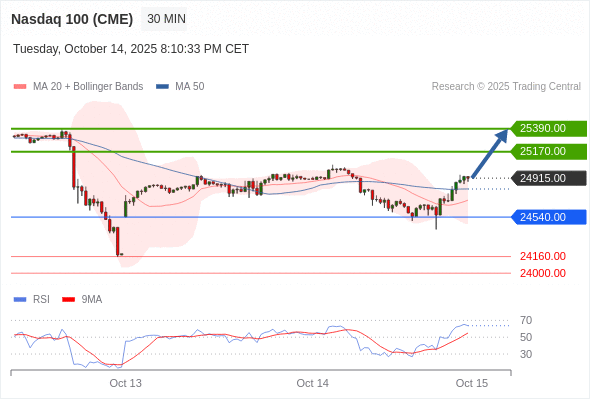 在 24540.00 之上,看涨,目标价位为 25170.00 ,然后为 25390.00 。