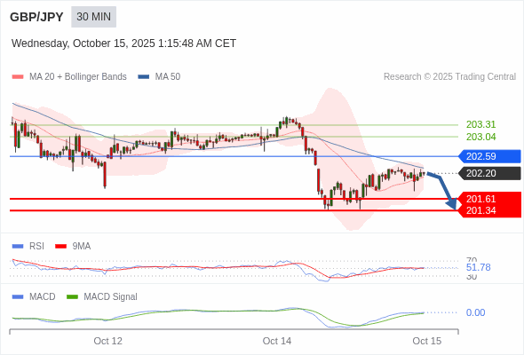 英镑/日元 当日内 : 在进一步下跌之前,反弹至 202.59 附近。