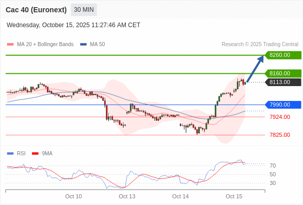 法国CAC指数期货 (Euronext) (V5) 当日内: 上升趋势。