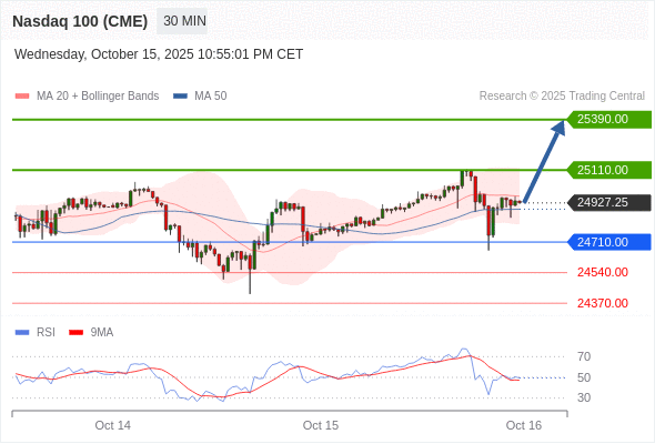 在 24710.00 之上,看涨,目标价位为 25110.00 ,然后为 25390.00 。