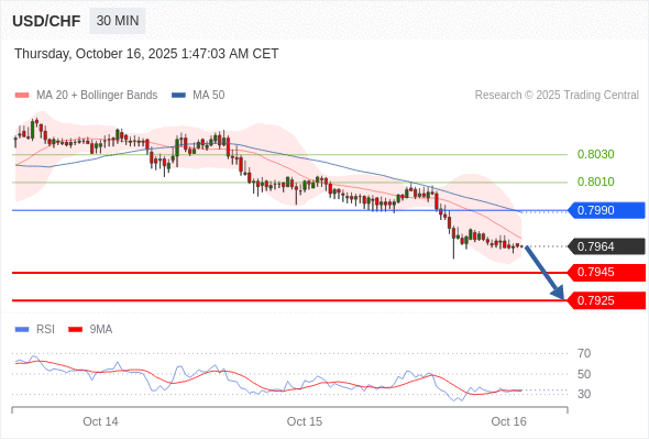 在 0.7990 之下,看跌,目标价位为 0.7945 ,然后为 0.7925 。