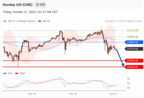 在 24890.00 之下,看跌,目标价位为 24540.00 ,然后为 24420.00 。