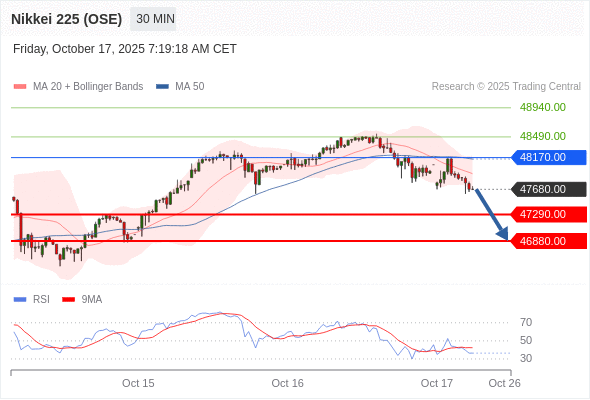 在 48170.00 之下,看跌,目标价位为 47290.00 ,然后为 46880.00 。