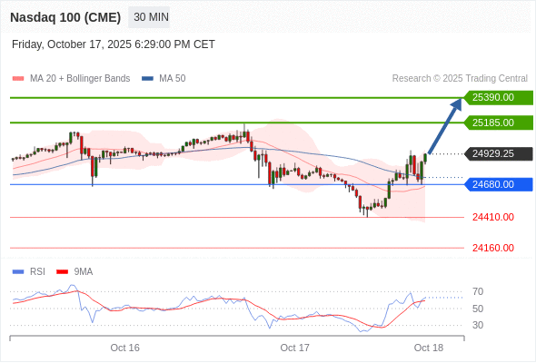 在 24680.00 之上,看涨,目标价位为 25185.00 ,然后为 25390.00 。