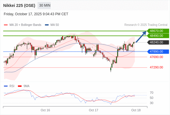 交易策略: 在 47890.00 之上,看涨,目标价位为 48490.00 ,然后为 48670.00 。