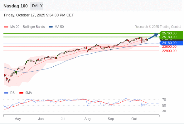 在 24180.00 之上,看涨,目标价位为 25180.00 ,然后为 25760.00 。