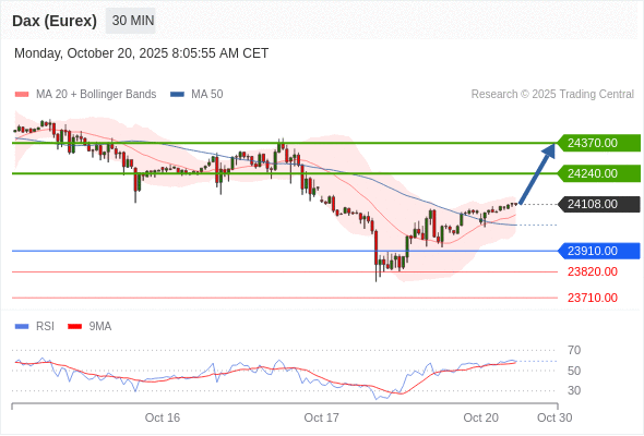在 23910.00 之上,看涨,目标价位为 24240.00 ,然后为 24370.00 。