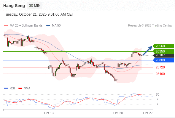 在 26000 之上,看涨,目标价位为 26350 ,然后为 26560 。