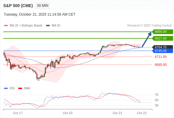 在 6745.00 之上,看涨,目标价位为 6817.00 ,然后为 6855.00 。
