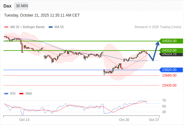 德国DAX指数 当日内: 在23820.00之上,看涨。