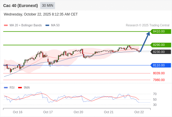 在 8110.00 之上,看涨,目标价位为 8290.00 ,然后为 8410.00 。