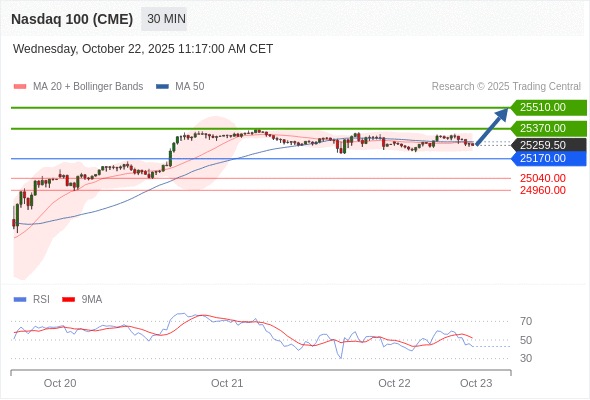 在 25170.00 之上,看涨,目标价位为 25370.00 ,然后为 25510.00 。