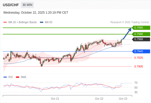 美元/瑞郎 当日内: 看涨。